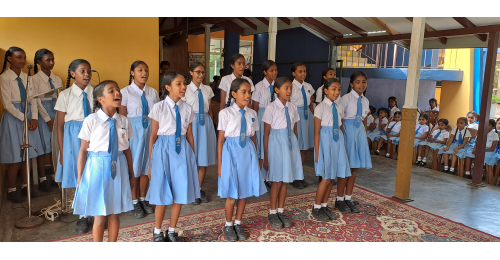 2024 Visiting HAGS on March 7 - One group of students singing a welcome song...